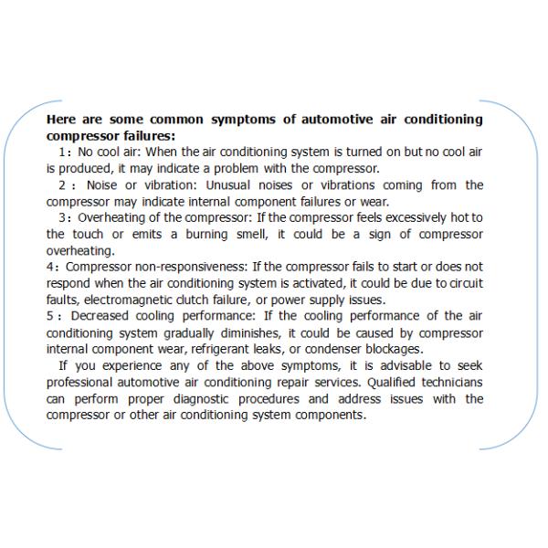 | Compressor operationCompressor is only responsible for air conditioning compression refrigeration work,of course, compressor compression work is done well, refrigeration will be faster.Note: No leakage, no noise, are qualified products |